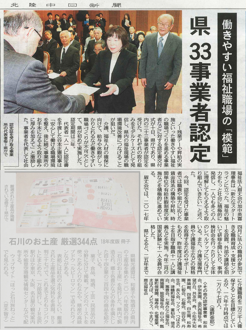 北國新聞 平成21年4月24日 朝刊 「石川北」面 に掲載された記事です。 |